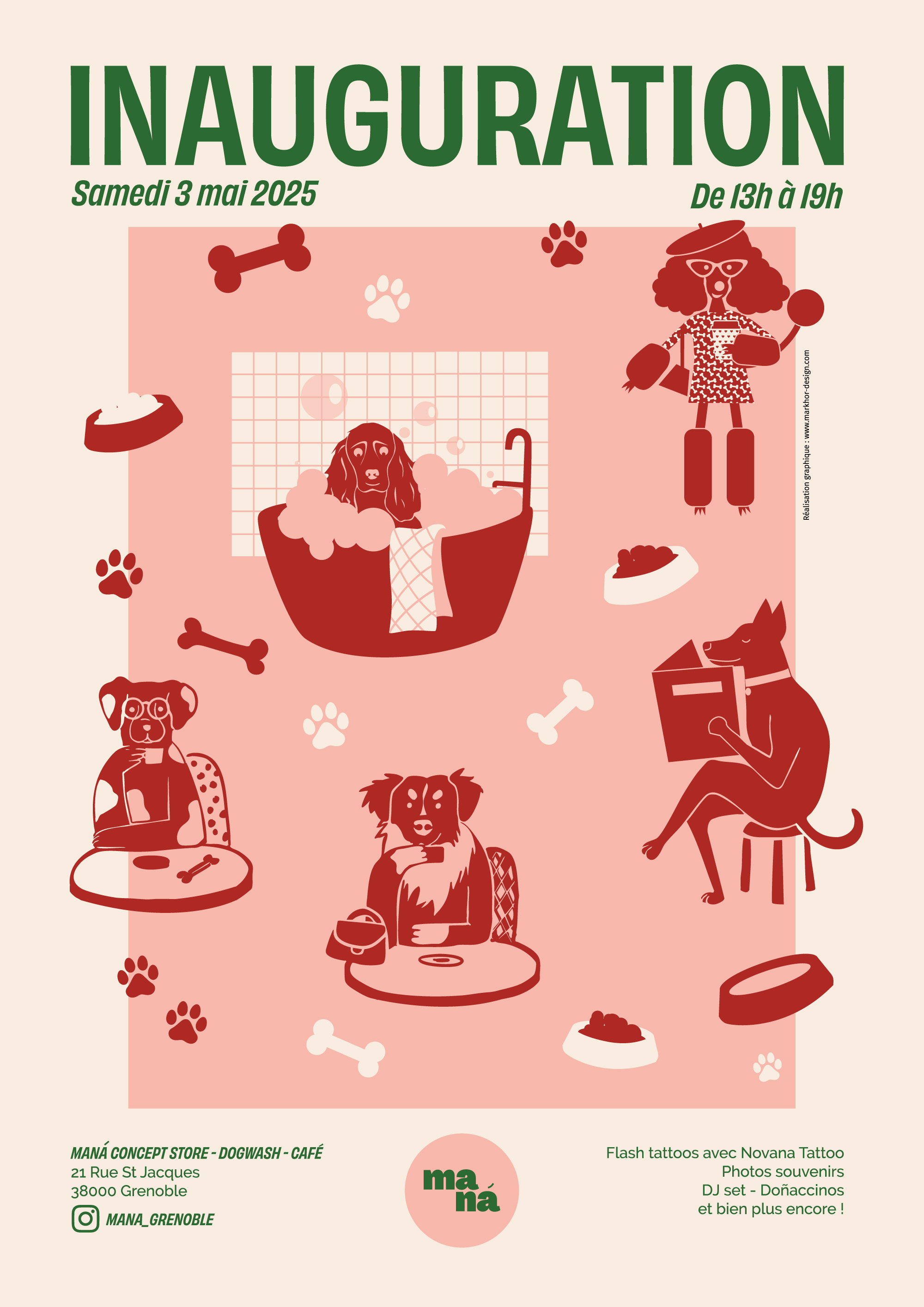 Mana est un dog café où l’on peut s’installer avec son compagnon à 4 pattes. C’est un lieu qui propose un dog wash, des objets à vendre, des ateliers… Tout est pensé pour les chiens.