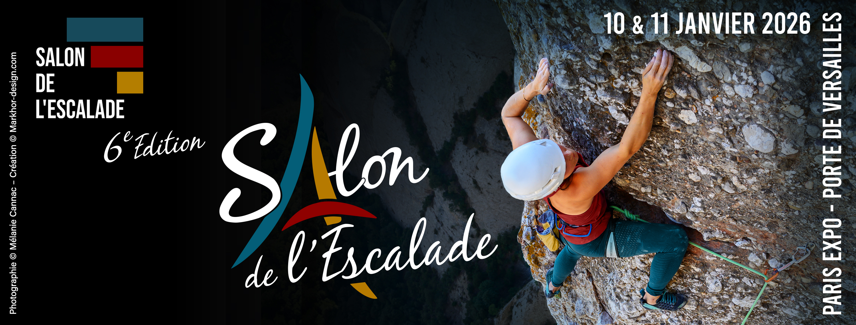 Pour sa 6e édition, le salon de l’escalade 2026 a lieu à Paris Porte de Versailles et j’ai à nouveau le plaisir de collaborer avec Eric Hatesse comme pour les 5éditions précédentes. Comme chaque année le projet est des créer une affiche qui sera déclinée en flyer, réseaux sociaux et impression en différent format (métro, périphérique, bâche Porte de Versailles…), goodies, oriflamme, signalétique, un guide visiteur de 36 pages et d’autres réalisations.